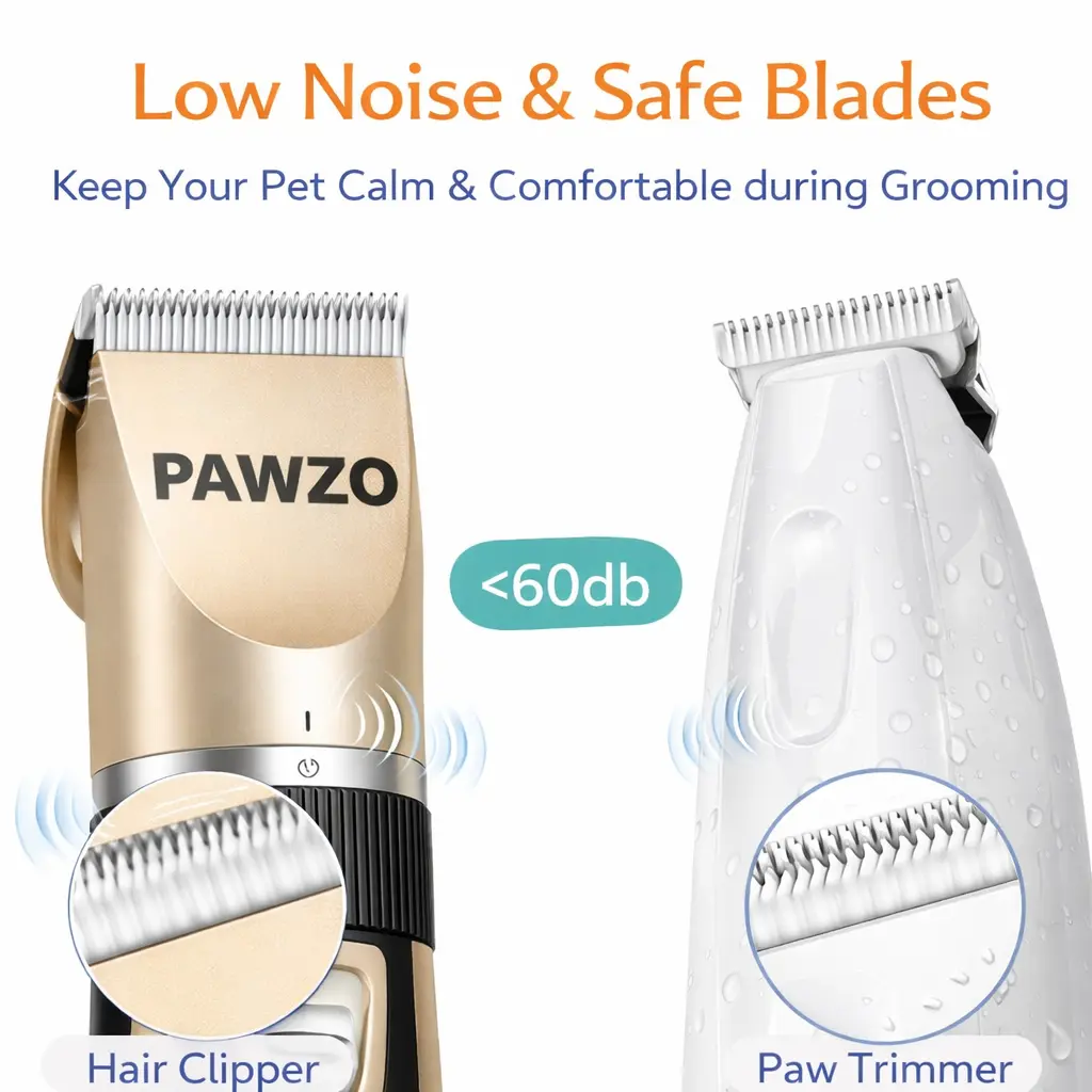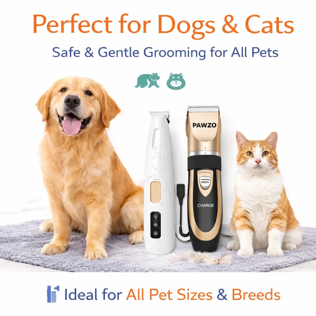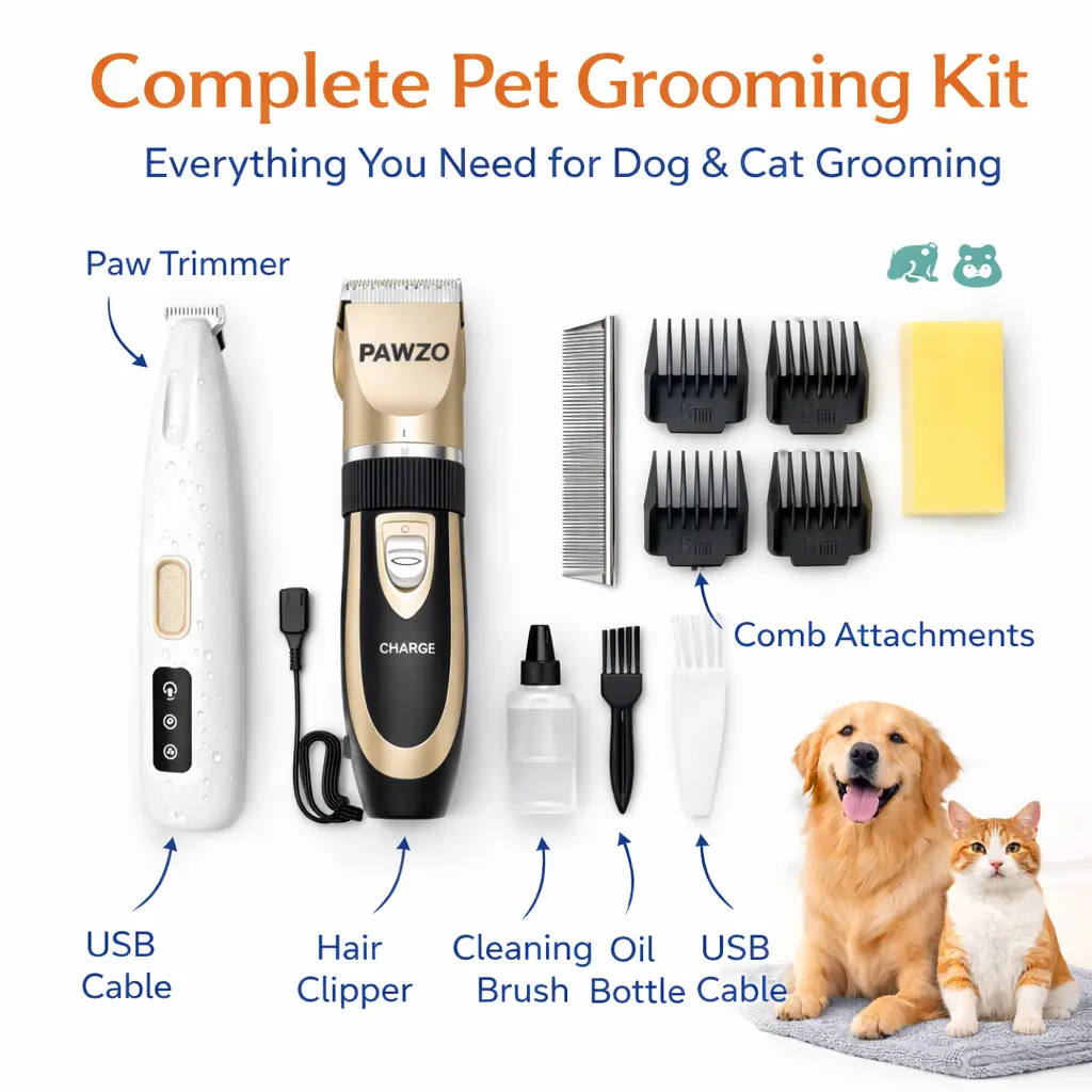 Pawzo 2-in-1 Pet Grooming Combo Kit – Dog Paw Trimmer & Professional Hair Clipper Set for Dogs & Cats | Low Noise Rechargeable Grooming Kit