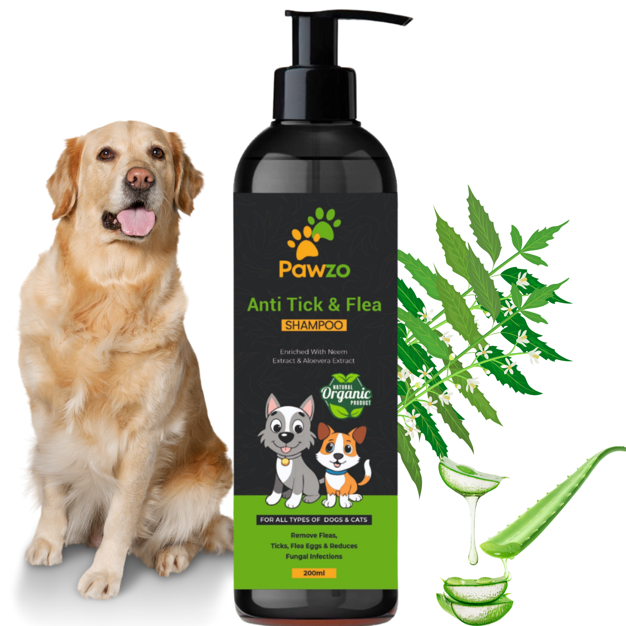 Keep your furry companion safe, clean, and happy with Pawzo Tick & Flea Dog Shampoo – the ultimate solution for tick, flea, and skin irritation problems. Made with the power of Neem and Aloe Vera, this gentle, pet-safe formula not only removes parasites but also soothes itchy, irritated skin and promotes a healthy, shiny coat.