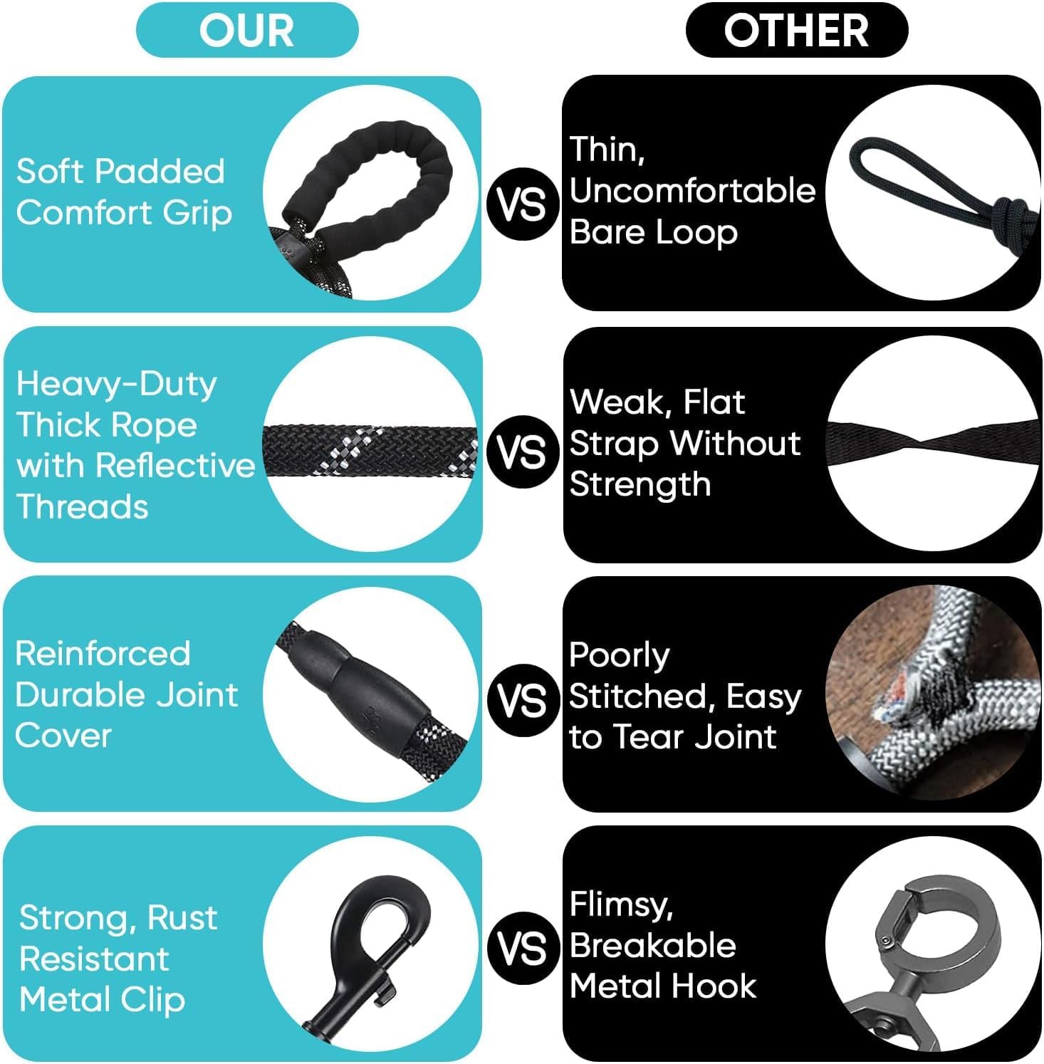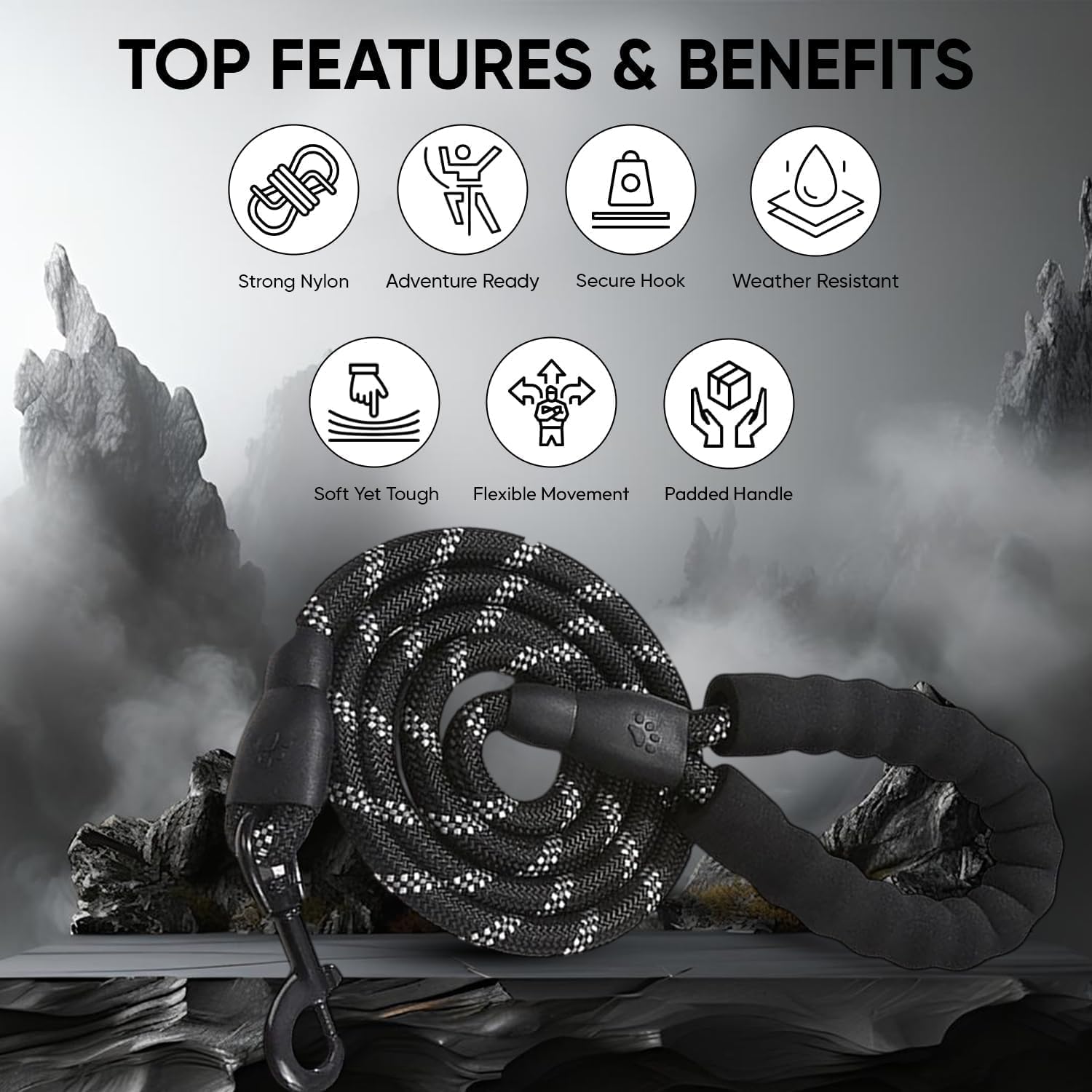 Designed for strength, comfort, and everyday walks. Pawzo’s heavy-duty braided rope leash features reflective weaving for better visibility, a soft padded handle for superior grip, and a strong metal hook for secure control. Built to handle daily use while keeping your dog safe and comfortable—perfect for walks, training, and outdoor adventures.